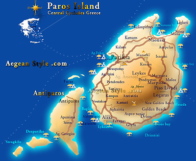 Paros island is the third largest Cycladic island after Naxos and Andros located in the Aegean sea in the center of Cyclades. It has an area of 205 sq.km and lies 90 nautical miles from Piraeus and 80 nautical miles from Rafina ports a very important maritime knot; its connected by boats with nearly all the Aegean islands and Crete. The island also hosts an airport with connections to Athens.